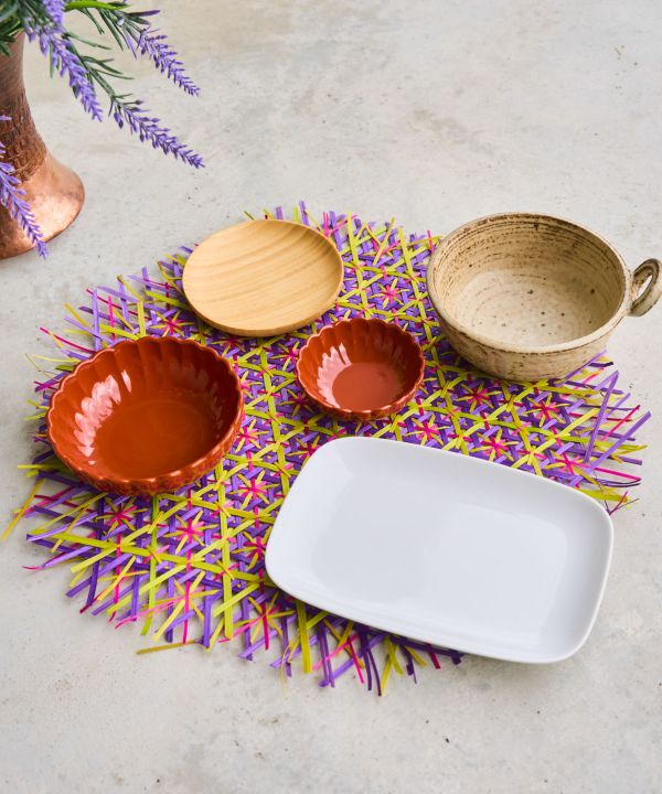 【タイ直輸入】カラフルな色合いと竹の風合いが魅力のランチョンマット。家族の食卓に並べても映える存在感で、コーディネートの幅が広がります。※柄が一つ一つ異なるアソート商品です。※一点をお届けします。