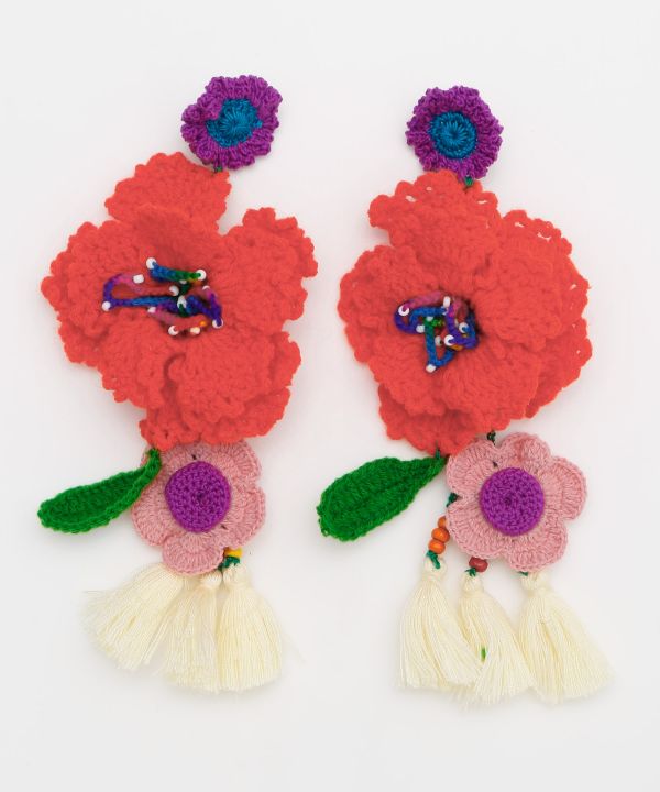 耳元に咲くような立体的な花モチーフが印象的なピアス。インパクトのある大ぶりサイズで、ひとつで装いを華やかに彩る主役級アクセ。