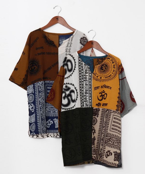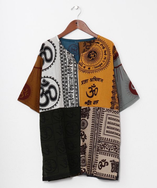 【タイ直輸入】オームモチーフのパッチワークが目を惹く遊び心たっぷりのメンズクルタ。柔らかいタイコットン素材とゆったりシルエットでリラックス感満点。他にはないデザインを楽しめる一枚。※一点をお届けします。※色が一つ一つ異なるアソート商品です。カラーはお選びいただけません。※画像は一例です。
