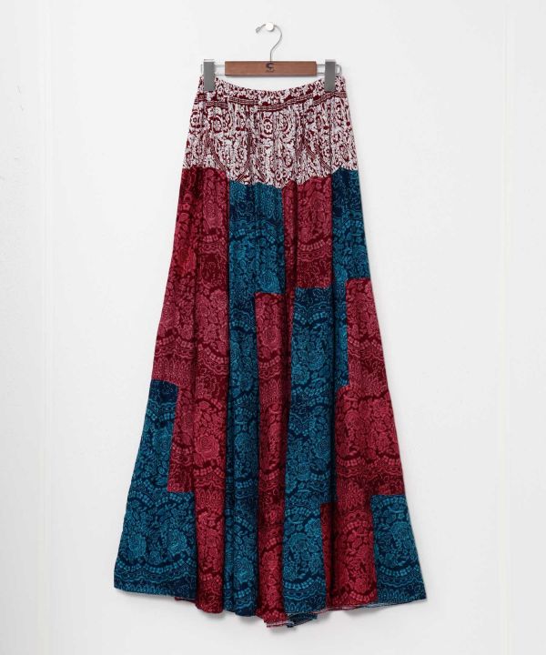 【タイ直輸入】豪華なパッチワークが存在感を放つスカート。曼荼羅やピーコック柄などエスニック柄を贅沢に使用したデザイン。※一点一点色味が異なるアソート商品です。※写真は一例です。