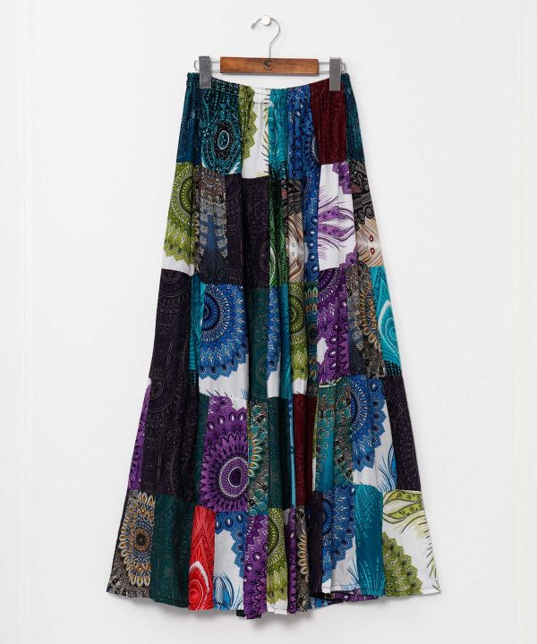 【タイ直輸入】豪華なパッチワークが存在感を放つスカート。曼荼羅やピーコック柄などエスニック柄を贅沢に使用したデザイン。※一点一点色味が異なるアソート商品です。※写真は一例です。