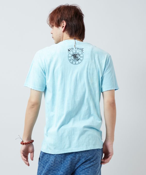 【タイ直輸入】サイケデリックな柄でヒッピーなムードを漂わせるメンズTシャツ。月や太陽、蝶やきのこなど、自然との共生を表現したモチーフを使用。ヴィンテージ加工が味わいをプラスし、他にない個性を放つ一枚。