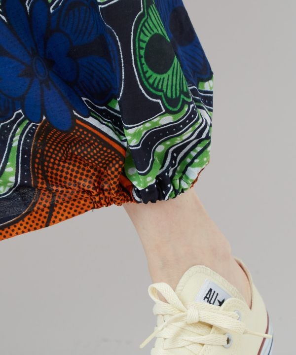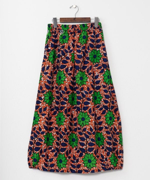 【タイ直輸入】コクーンシルエットのスカート。アフリカンファブリックから着想を得た総柄デザイン。サイドはゴム入りで立体感あるフォルムに。張りのある素材でシンプルなトップスとの相性も抜群。
