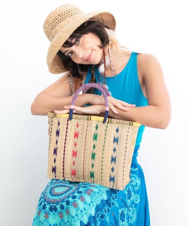 【タイ直輸入】サコンナコーンで作られたMサイズの手編みカゴバッグ。素朴な素材感と丁寧な職人技が魅力。使いやすい大きさでナチュラルなコーデにぴったり。サコンナコーンは、タイ東北部の小さな町。昔から続く手編みのカゴ作りが盛んで、その技術を守るために「一村一品(OVOP)」のモデル地区にもなっています。地域の素材を使い、職人たちが手作業で編むカゴは、まさに「土地の暮らし」から生まれたもの。