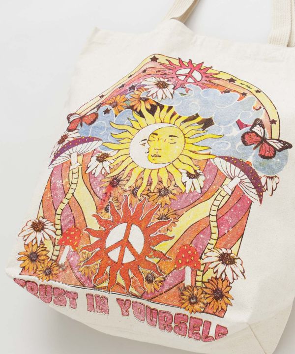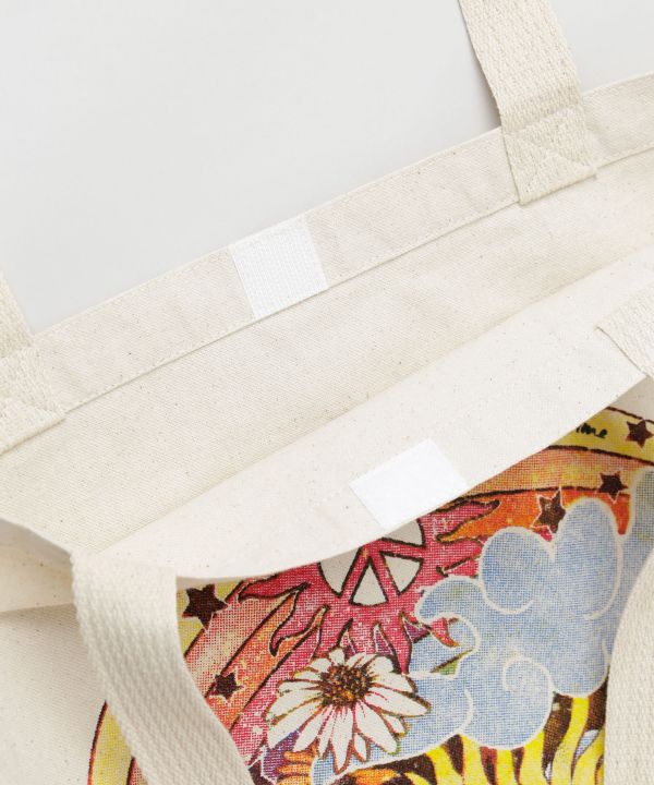【タイ直輸入】ビンテージ感のある風合いとヒッピーライクなプリントが魅力の大容量トートバッグ。内側にはマジックテープ付きで中身が見えにくく、使い勝手も良いバッグです。
