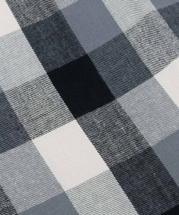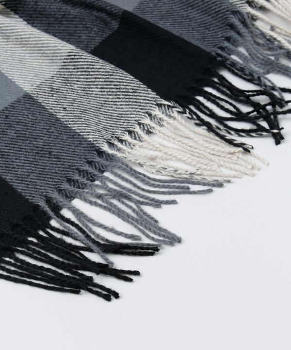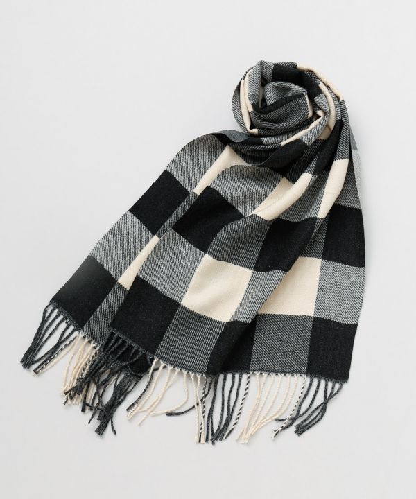大きめのブロックチェック柄のダブルフェイスストール。さらりと首元に巻くだけでコーディネートが引き締まります。