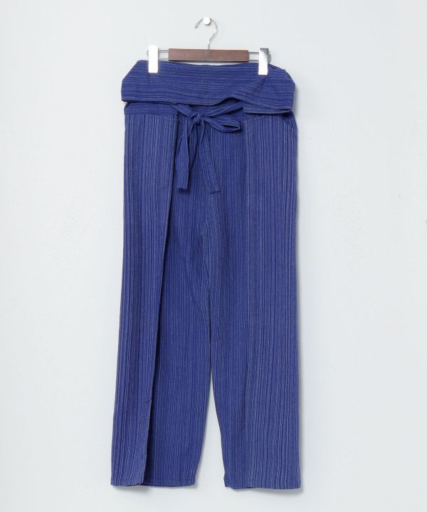 虜になる抜群の穿き心地。元来タイの作業着として親しまれてきたタイパンツ。ゆったりとした穿き心地でリラックスタイムにもぴったり。サイズレスで楽しめるスタンダードな形で、穿き方によってシルエットも変幻自在。柔らかく素朴な風合いのコットン生地。嬉しいポケット付。長年愛されるには理由がある。