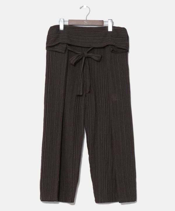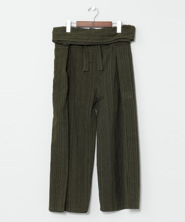 虜になる抜群の穿き心地。元来タイの作業着として親しまれてきたタイパンツ。ゆったりとした穿き心地でリラックスタイムにもぴったり。サイズレスで楽しめるスタンダードな形で、穿き方によってシルエットも変幻自在。柔らかく素朴な風合いのコットン生地。嬉しいポケット付。長年愛されるには理由がある。