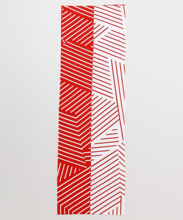 通常より長めの縦長シルエットで、首や頭にもゆとりをもって巻ける長尺タイプの手拭い。異なる縞柄を組み合わせたモダンなデザインが印象的です。日常使いはもちろん、装いのアクセントやインテリア使いにもおすすめの一枚です。