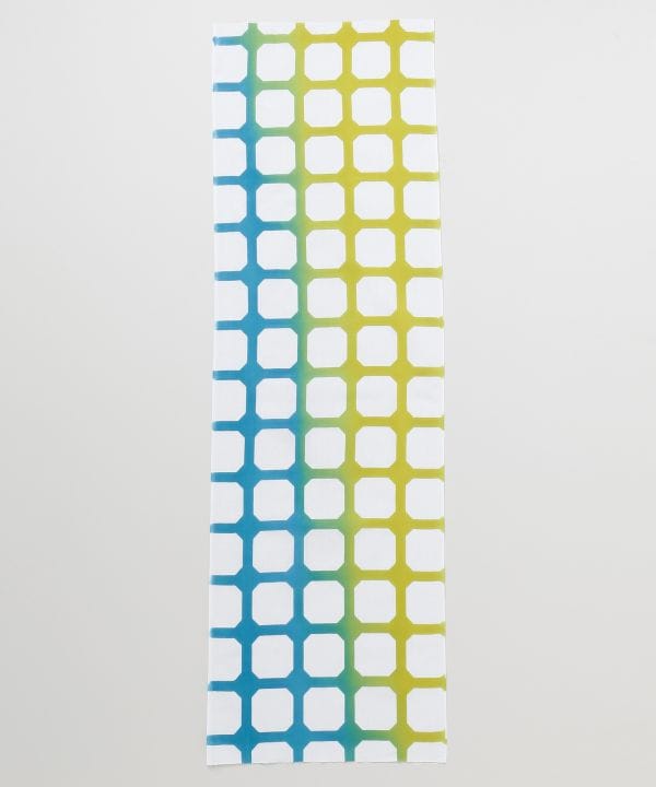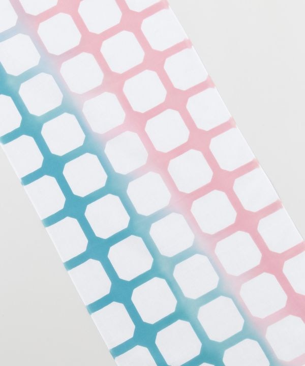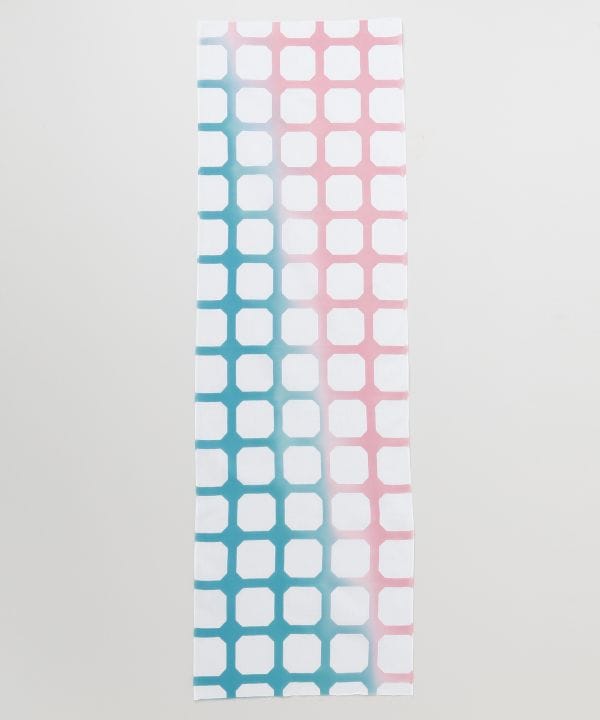 通常より長めの縦長シルエットで、首や頭にもゆとりをもって巻ける長尺タイプの手拭い。角を抜いた伝統文様を現代的にリデザインし、やわらかなグラデーションが印象的。日常使いはもちろん、装いのアクセントやインテリア使いにもおすすめの一枚です。