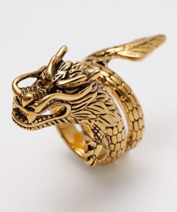 存在感のあるモチーフが目を引くデザインリング。程よいボリューム感で、手元のアクセントに。