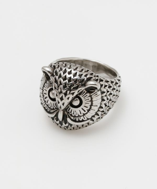 存在感のあるモチーフが目を引くデザインリング。程よいボリューム感で、手元のアクセントに。