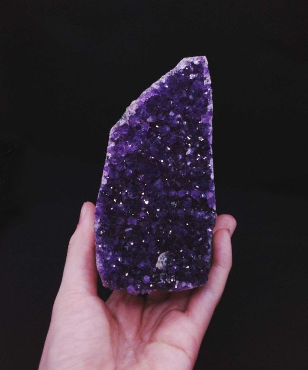 まるで夜空に散る星のようにきらめく、ウルグアイ産アメジストの一点ものクラスター。細やかな結晶が密集し、光を当てる角度によって表情を変えながら繊細な輝きを放ちます。深い紫が特徴のウルグアイ産ならではの美しさで、眺めるたびに新しい発見をもたらしてくれます。安定感のある置き型タイプで、お部屋にそっと置くだけで穏やかな静けさとやさしい浄化の気配を広げてくれます。インテリアとしてはもちろん、お祀りの場やお清めの空間にもおすすめの原石です。結晶の大きさや内包物には一点ごとに個性があり、世界にひとつだけの魅力としてお楽しみいただけます。