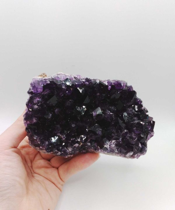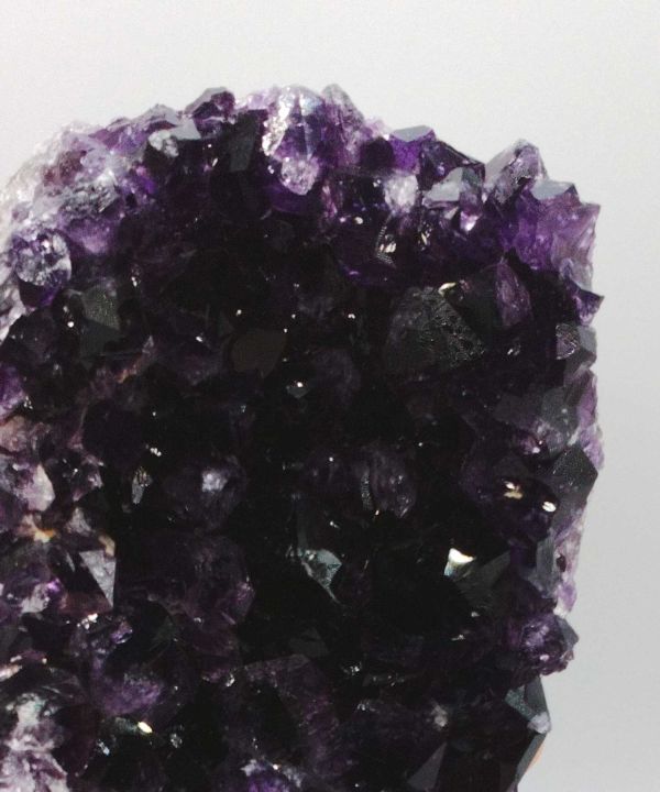 力強く育った結晶が堂々と並ぶ、存在感あふれるウルグアイ産アメジストの一点ものクラスター。深みのある紫が静けさと落ち着きをもたらし、照明の下では奥行きのある輝きを放って空間を上質に彩ります。美しく濃い紫が特徴のウルグアイ産ならではの魅力が際立ち、細かな結晶が密集した表情は角度によって繊細にきらめきます。安定感のある置き型タイプで、お部屋の中心に置きたくなるような堂々とした佇まい。インテリアとしてはもちろん、浄化やお清めの場にもおすすめです。結晶の大きさや内包物には一点ごとに個性があり、世界にひとつだけの存在としてお楽しみいただけます。