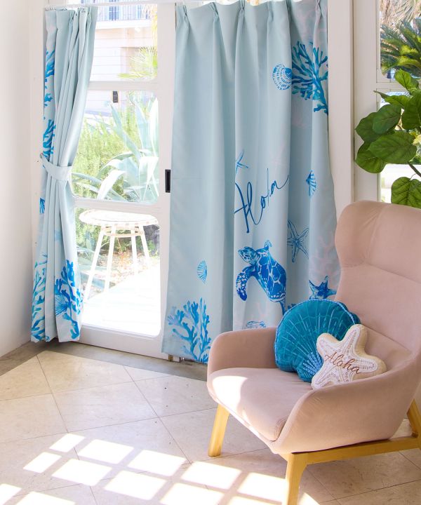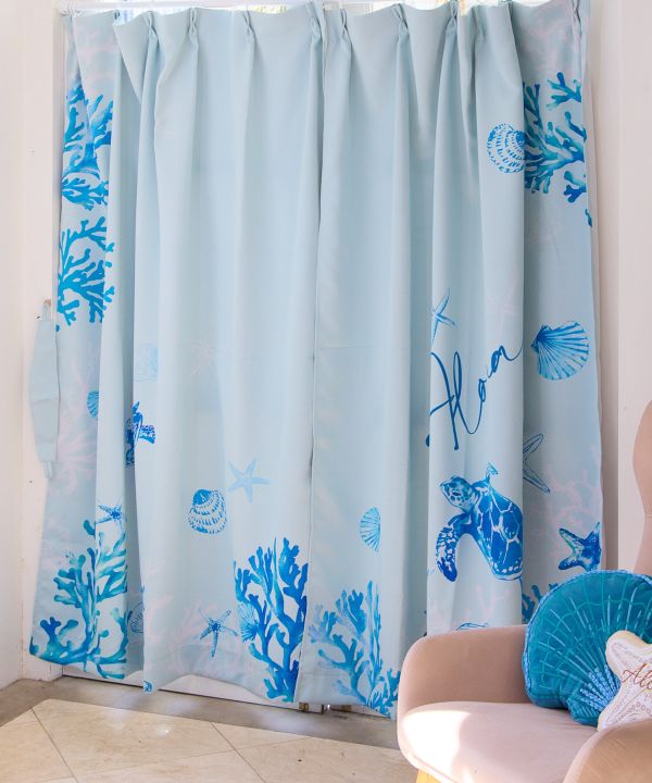 上品なハワイアンリゾートを思わせるデザインのカーテン。空間をやさしく彩りながら、遮光二級と遮熱機能を備えた実用性も魅力です。洗濯可能でお手入れしやすく、タッセルとアジャスターフック付きですぐに使える仕様。