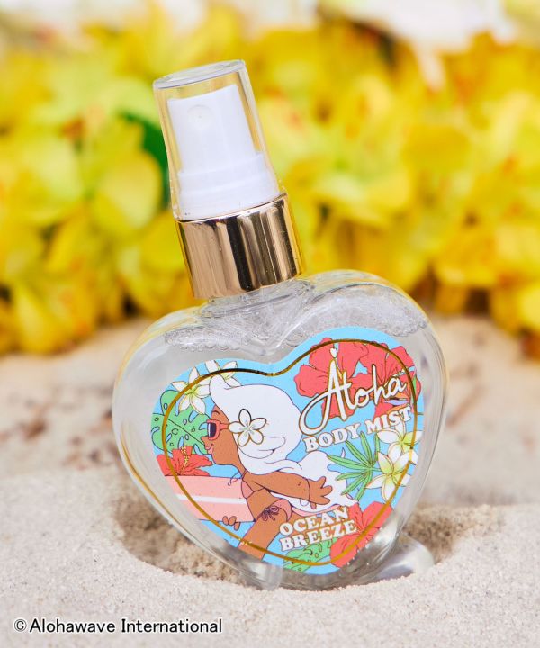 【Kahiko×Aloha Mapua】サーフィンとファッションを愛する、365日ハワイを感じられるキャラクター「ALOHA MAPUA(アロハマプア)」のボディミスト。キュートなハート型ボトルが魅力で、やさしい香りとともにリゾート気分を楽しめます。ギフトにもおすすめです。