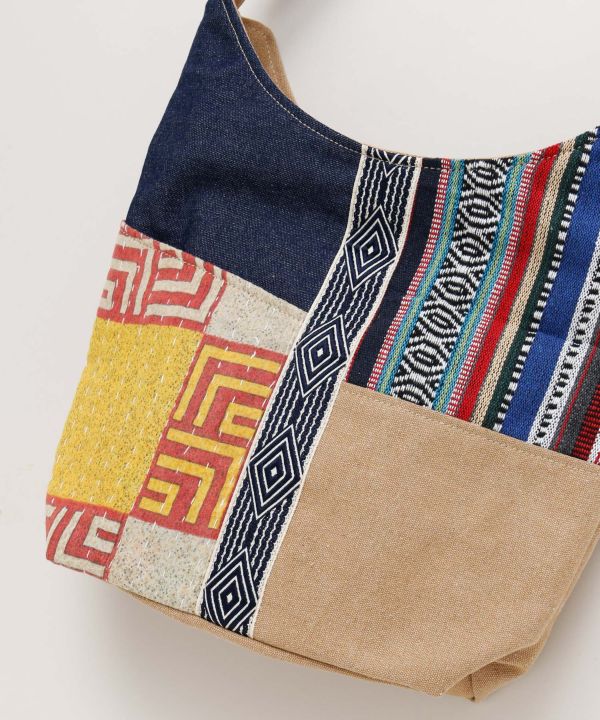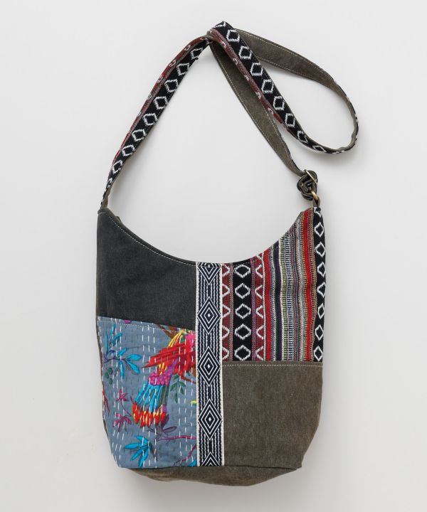 オールドカンタとウォッシュドキャンバス、ジャカード生地のパッチワーク。 ポイントで本革を使用したシリーズ。 使い込む程、味の出てくるこだわりのショルダーBAG。※柄が一つ一つ異なるアソート商品です。