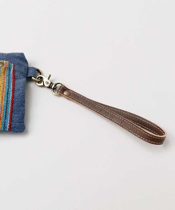 リサイクルジーンズを使用しており、 色落ちがそれぞれ違う一点物感を楽しめる。 取り外し可能なストラップ、Dリング付きなのでカスタム可能。 使い込む程、味の出てくるこだわりのポーチ。