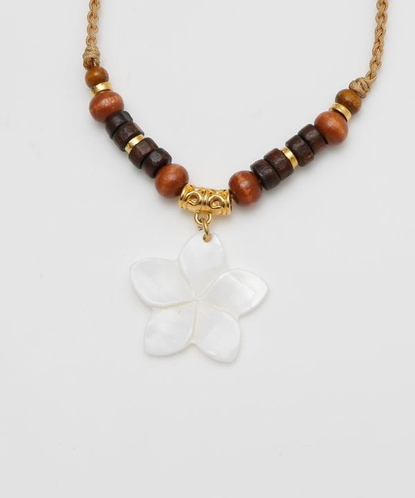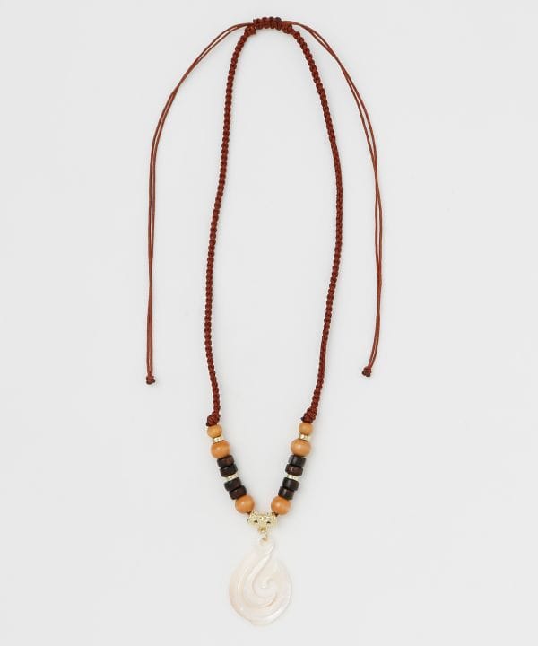 シェルモチーフと天然素材を組み合わせたナチュラルなネックレス。ハワイの海や大地を思わせる素材感が胸元を爽やかに彩ります。異なる質感のパーツが絶妙に調和し、コーディネートにさりげない存在感をプラス。リゾートスタイルにおすすめです。