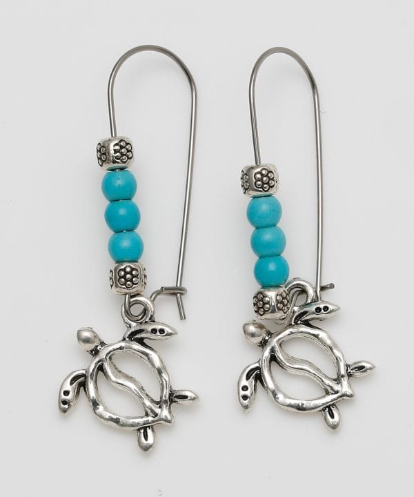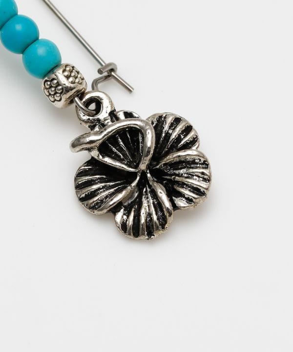 ターコイズカラーとハワイアンモチーフを組み合わせたピアス。フープタイプで軽やかな印象に。水にぬれても錆びにくい金具を使用し、アクティブなシーンにも取り入れやすいデザイン。耳元に爽やかな海のエッセンスを添えます。