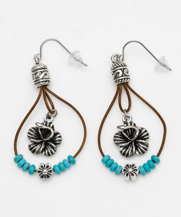 ターコイズとハワイアンモチーフを組み合わせたシンプルなピアス。揺れるデザインが特徴で、水にぬれても錆びにくい金具を使用し、デイリーからリゾートシーンまで活躍。
