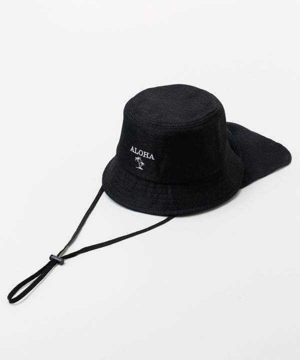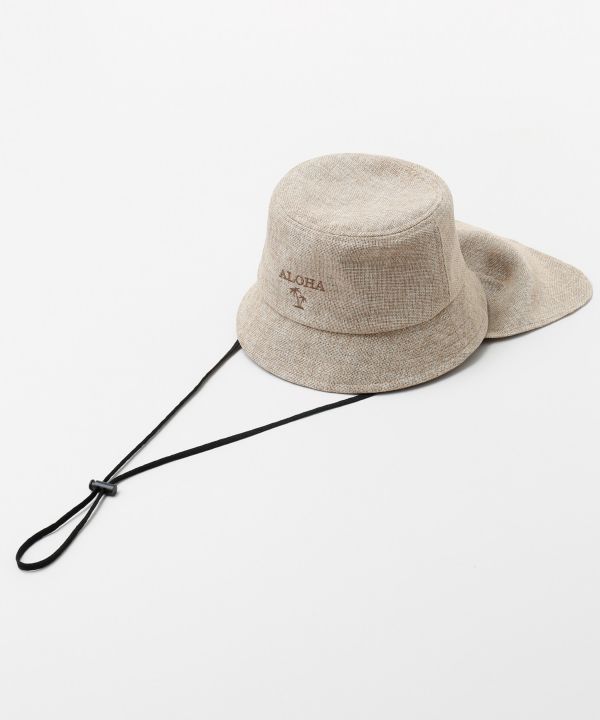 涼やかな素材感が魅力のUVカットハット。顔まわりをやさしく包み込み、おでかけやレジャーに活躍します。あごひも付きで風の強い日も安心の仕様。頭まわりはサイズ調整可能で、取り外しできる首元の日除け付き。アクティブなシーンに寄り添う頼れるアイテムです。