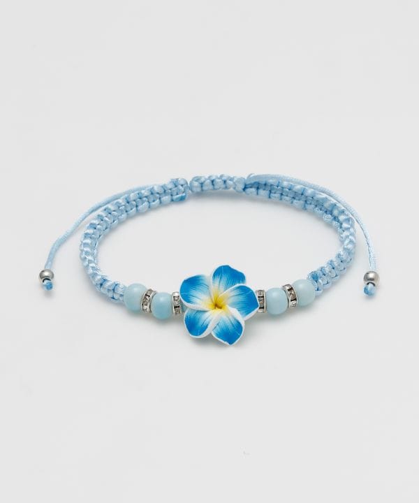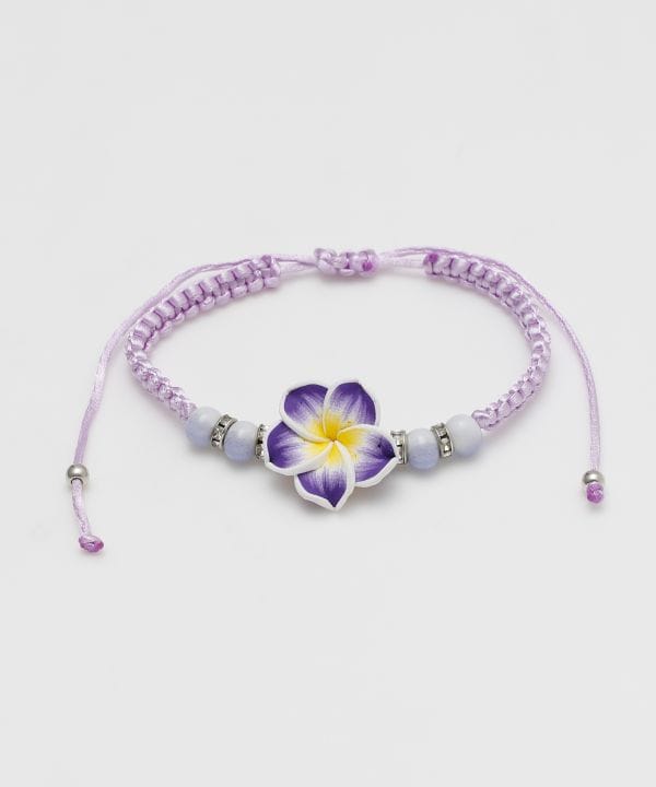 ハワイで神が宿る花とされるプルメリアをモチーフにしたブレスレット。カラフルな紐と花の組み合わせが、お土産のような温もりあるデザインです。華奢な印象で重ね付けにもおすすめ。手元にさりげなくハワイの彩りを添えてくれるアイテムです。