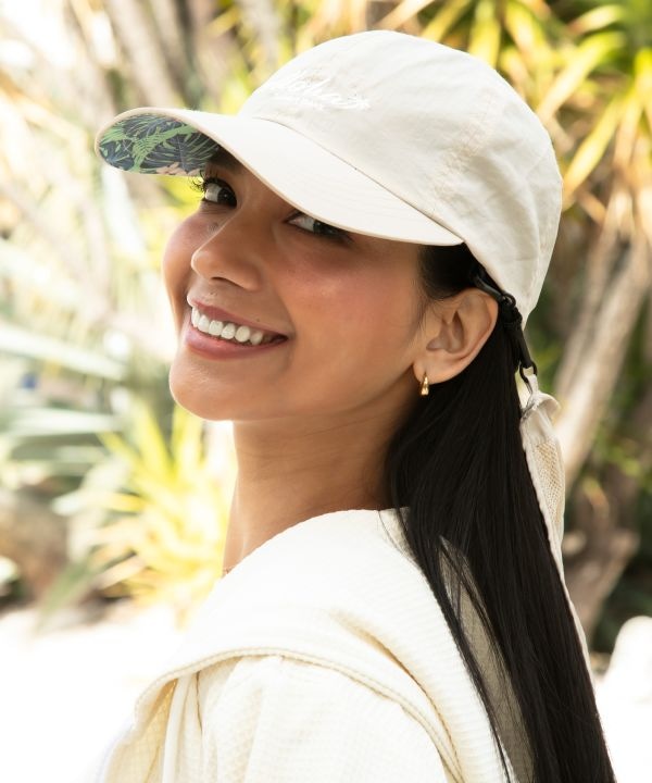 軽やかなナイロン素材を使用したUVカットキャップ。日差し対策をしながら、スポーティーなスタイルを楽しめます。あごひも付きで風の強い日も安心。頭まわりはサイズ調整可能で、首元の日除けは取り外し可能。アウトドアやレジャーに活躍するアイテムです。
