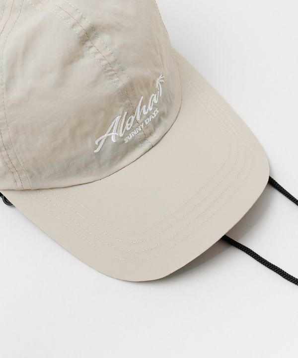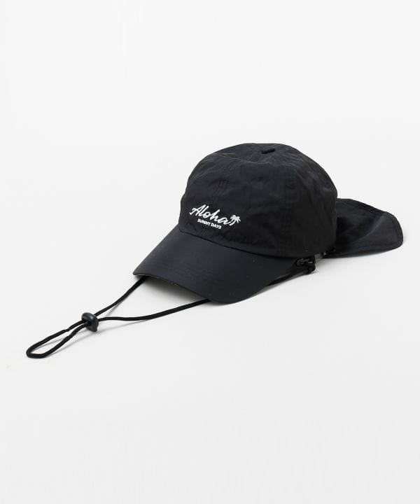 軽やかなナイロン素材を使用したUVカットキャップ。日差し対策をしながら、スポーティーなスタイルを楽しめます。あごひも付きで風の強い日も安心。頭まわりはサイズ調整可能で、首元の日除けは取り外し可能。アウトドアやレジャーに活躍するアイテムです。