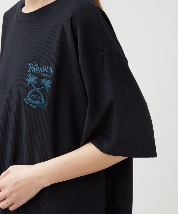 UVカットと接触冷感機能を備えた素材を使用したメンズTシャツ。さらりとした肌触りで快適な着心地を叶えます。前後に施した刺しゅうが存在感を放ち、シンプルながらも印象的なデザインに。デイリーからアクティブなシーンまで幅広く活躍する一着です。