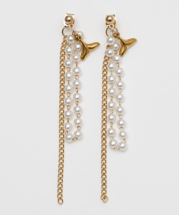 繊細なチェーンとホエールテールモチーフを組み合わせたロングピアス。動くたびに揺れるラインが美しく、耳元に海のきらめきを添えます。上品な輝きで、リゾートスタイルにもきれいめコーデにもなじむデザインです。