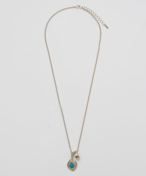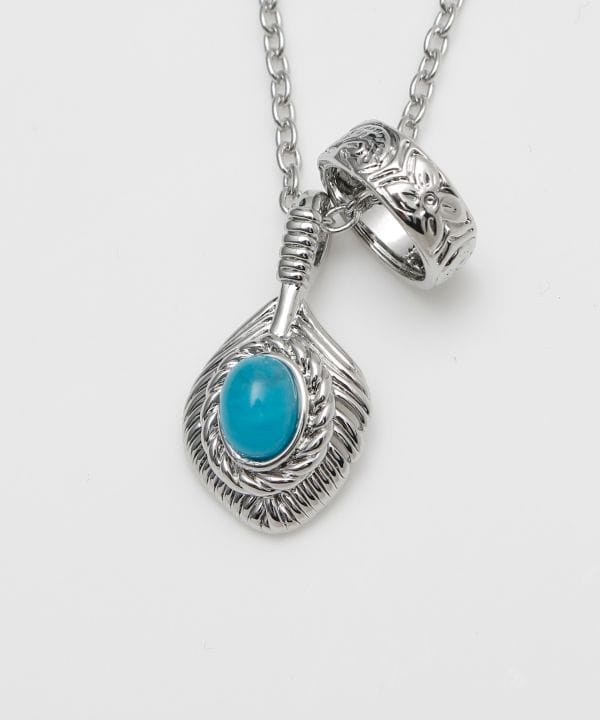 ターコイズカラーのストーンが印象的なネックレス。繊細なフェザーモチーフと組み合わせ、胸元にハワイの海を思わせる爽やかな輝きを添えます。シンプルなコーディネートのアクセントにおすすめです。