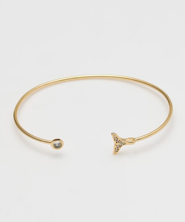 ホエールテールモチーフをあしらった華奢なバングル。海の守り神ともいわれるクジラの尾が、手元にさりげないハワイのエッセンスを添えます。シンプルなラインで重ね付けにもおすすめです。