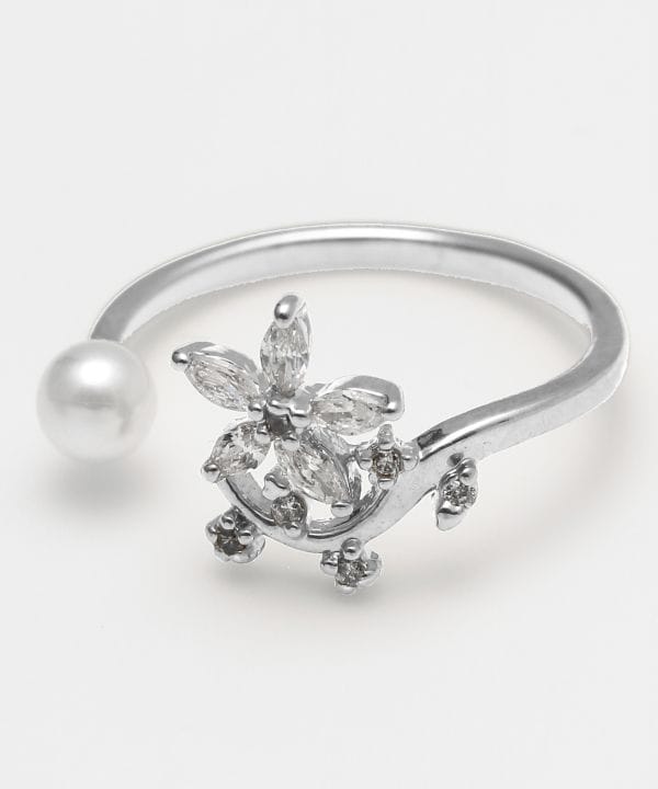 小さなフラワーモチーフとパールを組み合わせたリング。可憐なデザインが指先にやさしい華やかさを添え、上品な輝きがコーディネートのアクセントに。デイリーにも取り入れやすいアイテムです。