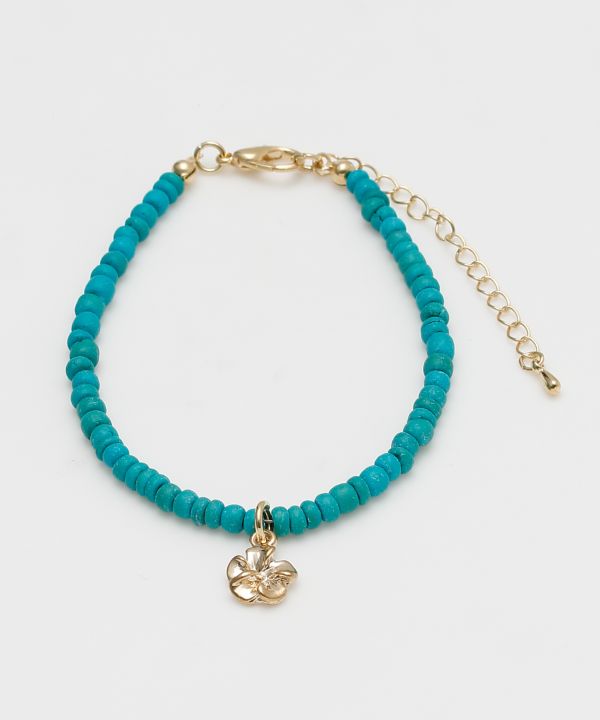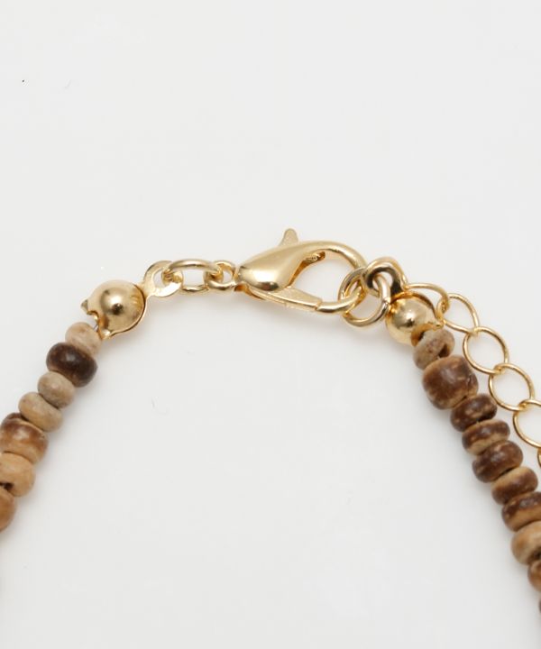 ビーズとチャームを組み合わせたブレスレット。ナチュラルカラーと爽やかなブルーの2色展開で、手元にさりげないアクセントをプラスします。重ね付けにもおすすめです。