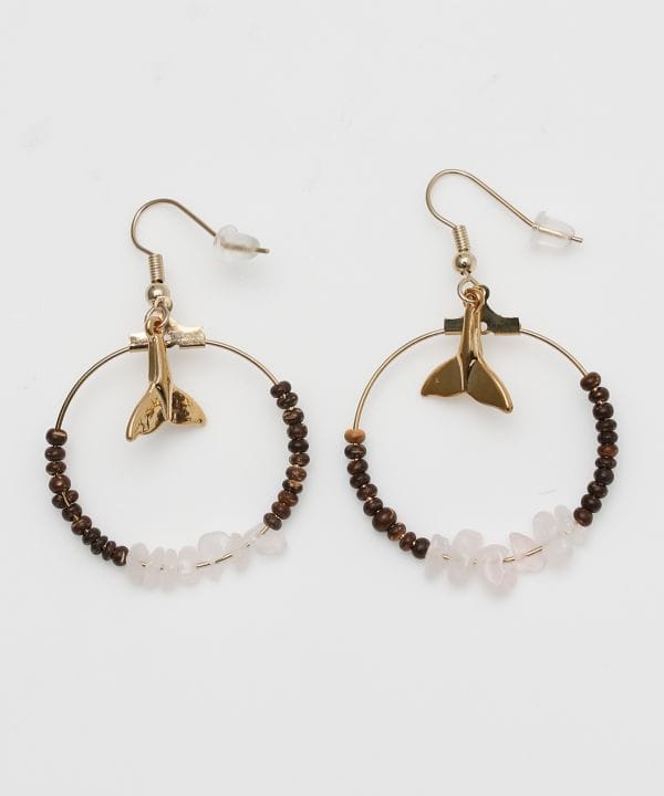 ビーズフープにホエールテールモチーフを組み合わせたピアス。海を感じさせるモチーフがアクセントとなり、コーディネートに爽やかな雰囲気をプラスします。