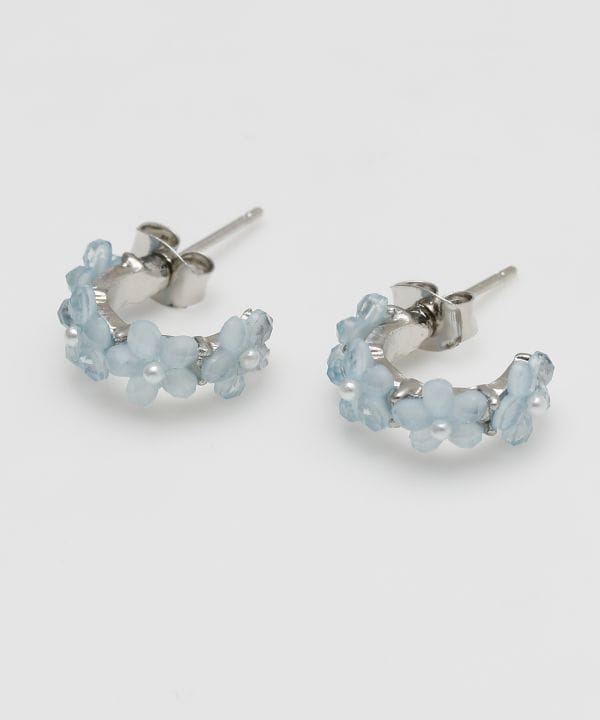 小粒ビーズをあしらったフープピアス。やわらかなカラーが耳元を優しく彩り、コーディネートにさりげないアクセントを添えます。