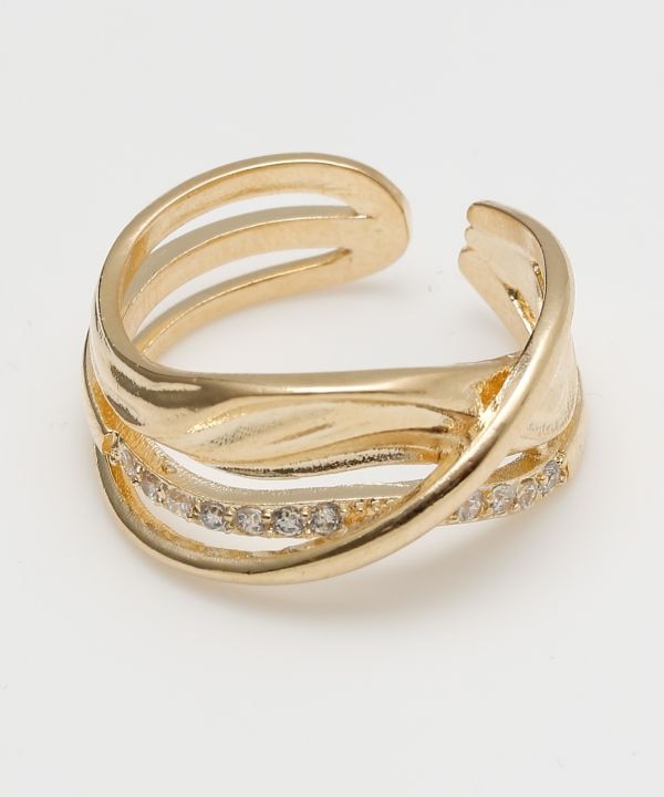 クロスしたラインが印象的なデザインリング。ほどよいボリューム感で、指元にさりげない存在感をプラスします。