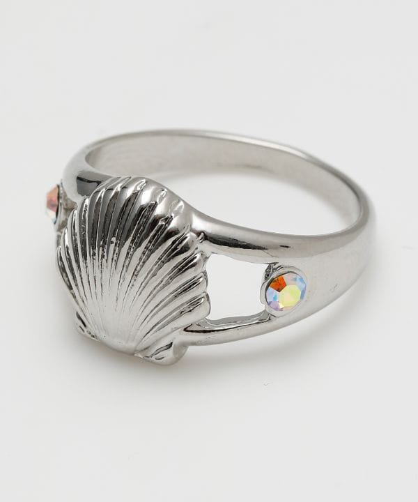 シェルモチーフが目を引くリング。さりげなくあしらったストーンが上品に輝き、海を感じさせるデザインです。