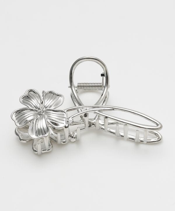 プルメリアモチーフが華やかに並ぶヘアクリップ。上品な輝きで、まとめ髪を女性らしく彩ります。