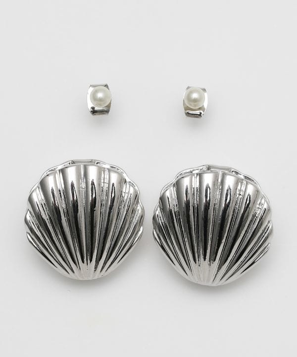 シェルモチーフが印象的なセットピアス。海を感じさせるデザインで、コーディネートにさりげない華やかさをプラスします。