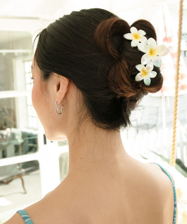 やわらかなカラーが魅力のフラワーヘアクリップ。まとめ髪やハーフアップに添えるだけで、コーディネートを明るく華やかな印象に仕上げます。