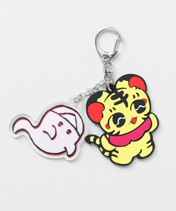 【倭物やカヤ×中村杏子】可愛らしい表情の動物たちをポップな色使いで表現したキーホルダー。ラバーとアクリルの二個セットで、それぞれ異なる質感を楽しめるのも魅力。バッグや鍵に付けて、日常に和の彩りを添えてくれるアイテムです。