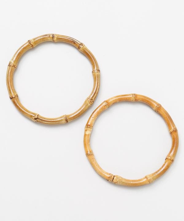 竹の節を生かした円形のバンブーハンドル。風呂敷の四隅を通すだけで簡単にバッグ仕様にアレンジできる便利な二個セット。いつもの風呂敷を上品でモダンな印象に仕上げ、和の装いはもちろん洋装のアクセントにもおすすめです。