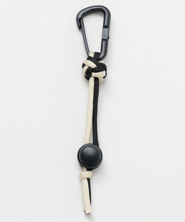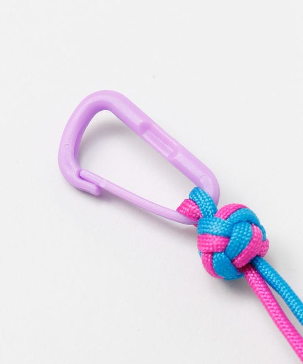 手ぬぐいを結んでバッグやベルトに取り付けられるカラビナキーホルダー。軽やかなプラスチック製カラビナに、配色が楽しい紐を組み合わせました。ループ部分はサイズ調整ができる仕様でいつもの手ぬぐいをアクセントとして持ち歩けるアイテムです。