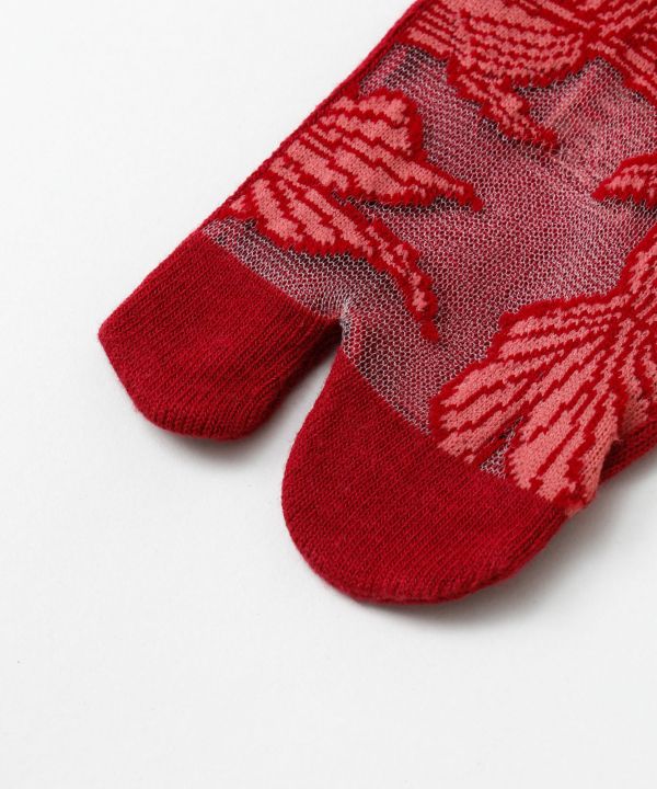 透け感のあるシースルー素材を使用した足袋靴下。軽やかな印象で足元をすっきりと見せ、装いに抜け感を添えます。足袋型で指先が動かしやすく、サンダルや草履とも好相性。和モダンなコーディネートにおすすめです。