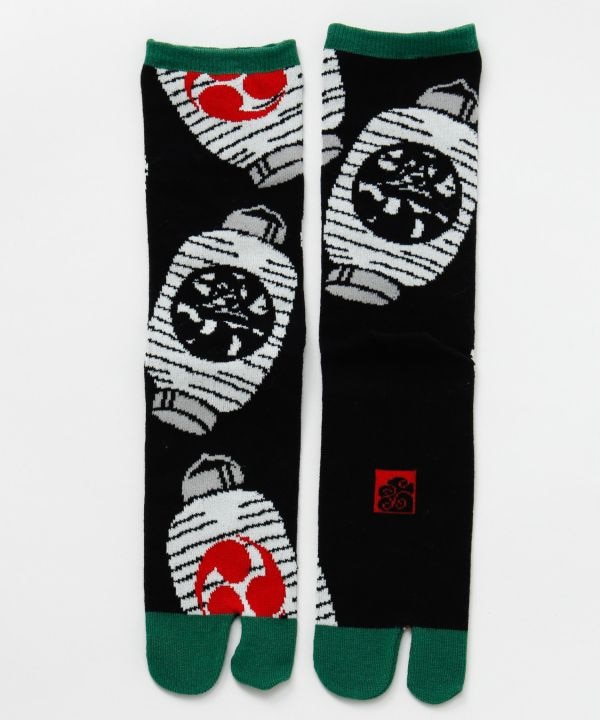 日本の祭りをテーマにした足袋靴下。オリジナルの祭りロゴを含む三柄展開で、にぎやかな雰囲気を表現しました。足にしっかりなじむ足袋型で履きやすく、日常使いにも取り入れやすいデザイン。足元から祭り気分を楽しめます。