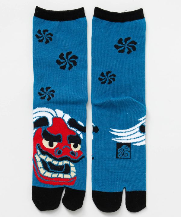 日本の祭りをテーマにした足袋靴下。オリジナルの祭りロゴを含む三柄展開で、にぎやかな雰囲気を表現しました。足にしっかりなじむ足袋型で履きやすく、日常使いにも取り入れやすいデザイン。足元から祭り気分を楽しめます。