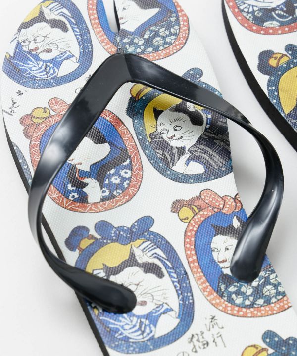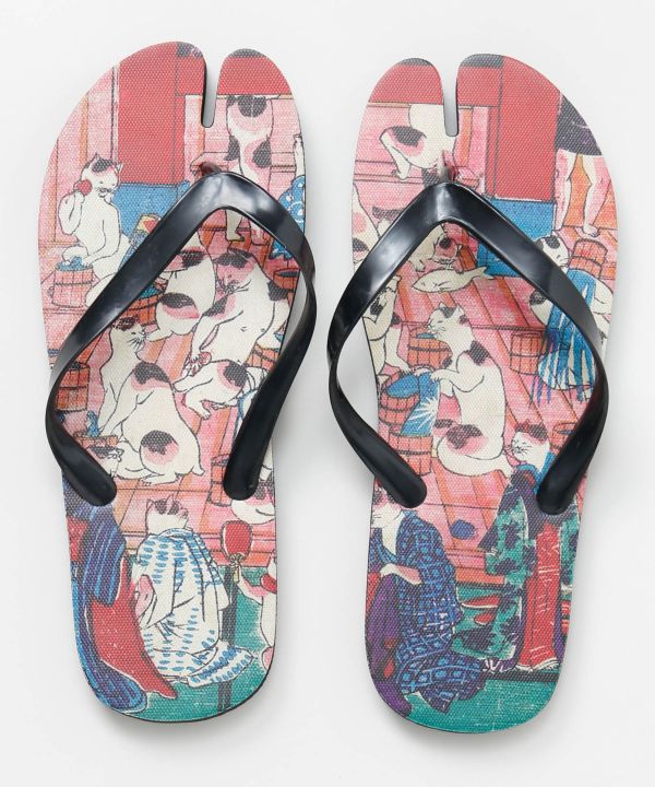 浮世絵柄を大胆にあしらった足袋型ビーチサンダル。指先が分かれた足袋仕様で、浴衣や和装にもなじむデザインです。軽やかで扱いやすく、水辺やおでかけにも便利。足元から和の粋を取り入れられる個性派アイテム。