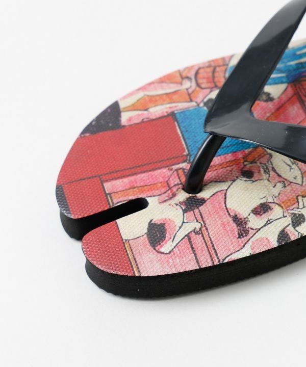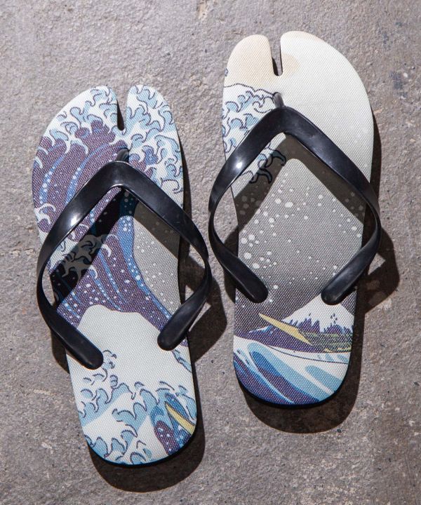 浮世絵柄を大胆にあしらった足袋型ビーチサンダル。指先が分かれた足袋仕様で、浴衣や和装にもなじむデザインです。軽やかで扱いやすく、水辺やおでかけにも便利。足元から和の粋を取り入れられる個性派アイテム。